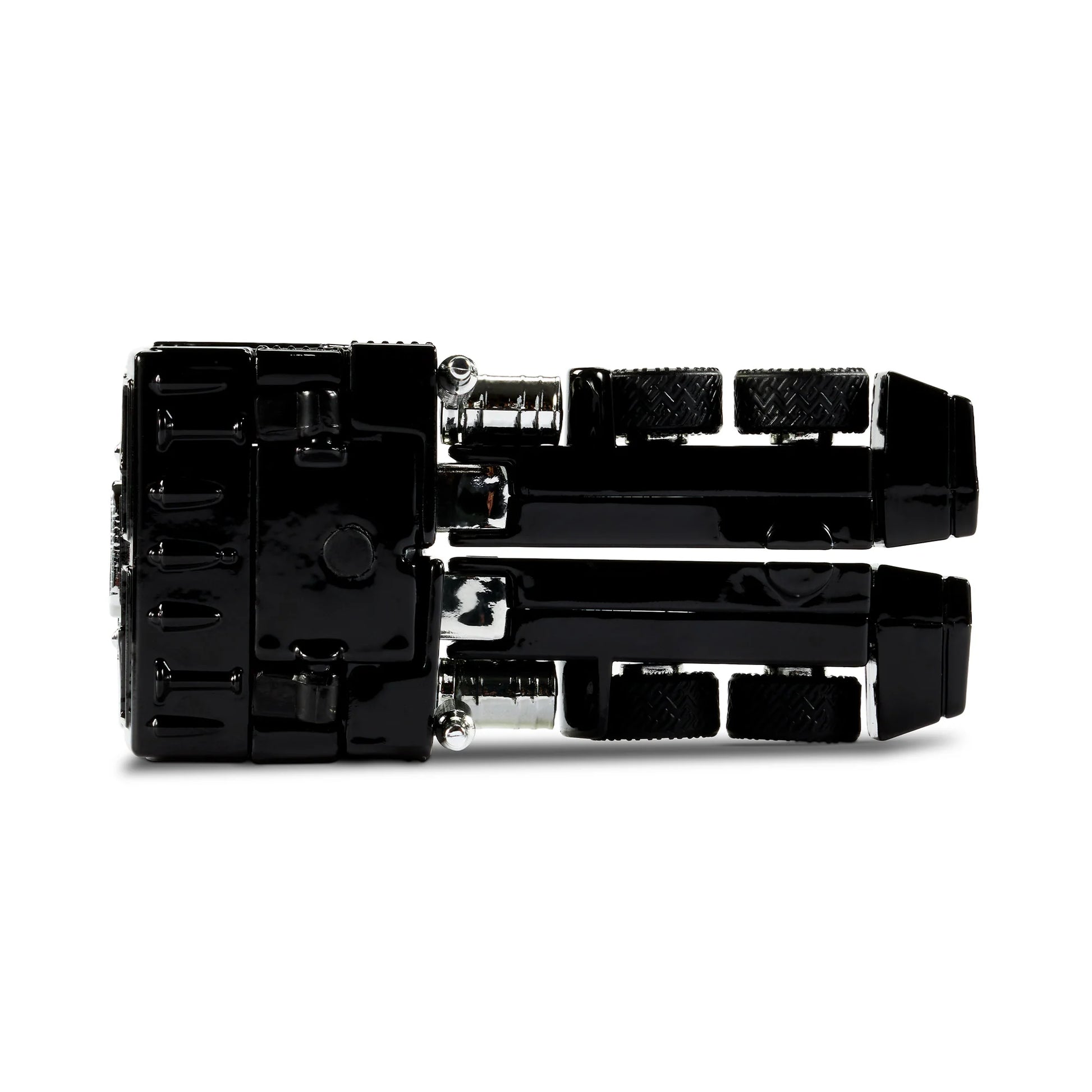 Designed for collectors, Nemesis Prime uses the same ingenious transforming casting as the previous Optimus Prime release, but reimagined with Decepticon symbols and dark deco. Open the windshield panel to attach his fists, convert him into robot mode, and arm him with the included ion blaster – then display him in the massive collector’s box inspired by vintage G1 Transformers branding.