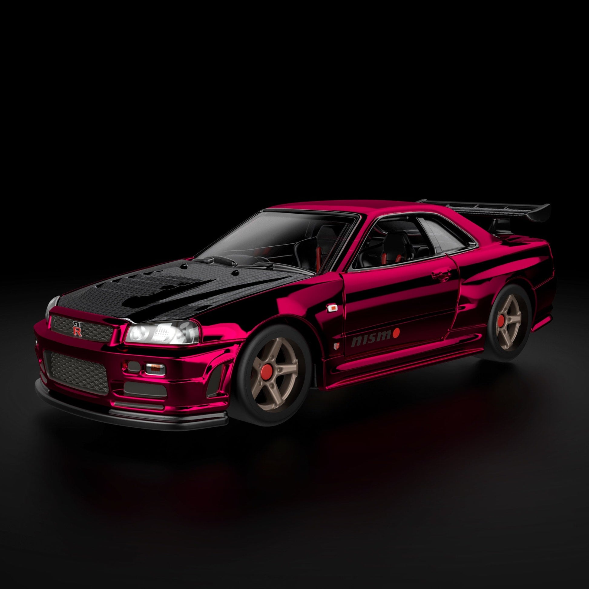 đ Own a piece of JDM legend and Hot Wheels history with the Hot Wheels RLC Exclusive Nissan Skyline GT-R (BNR34) 1:64 Diecast. This release is the definitive collectorâs R34: striking, color-shifting âChameleonâ oxblood paint, bronze 6-spoke Real Riders wheels, and opening hood with a detailed RB26 engine.