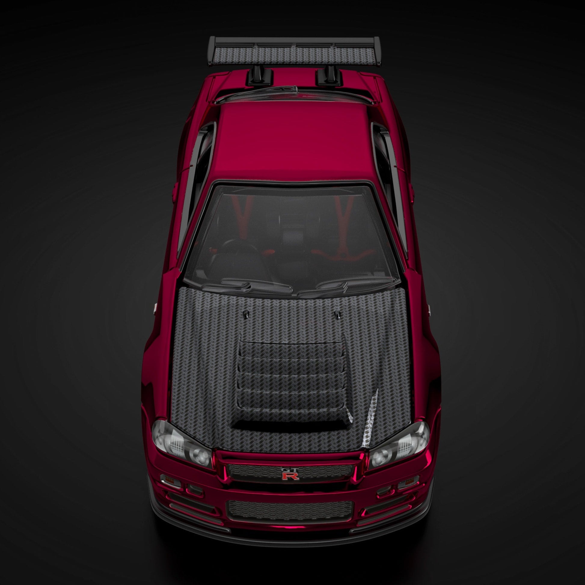 - Authentic JDM graphics: Detailed GTR badge, carbon hood, realistic spoiler, and âPURPâ license plate.